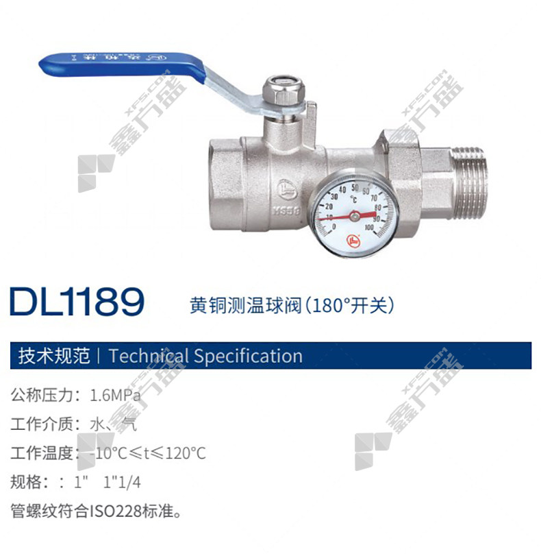 • 达柏林 DL1189黄铜测温球阀 DL1189 DN32 PN16