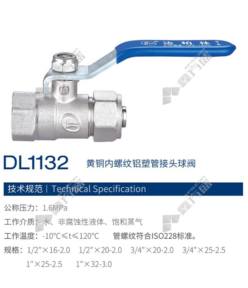 达柏林 DL1132黄铜丝扣连接铝塑管接头球阀 DL1132 DN25 PN16