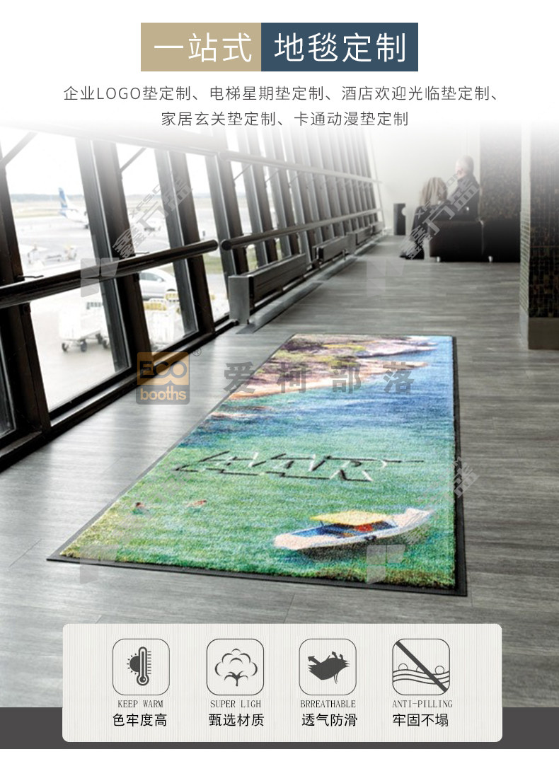 • 爱柯部落 高级意彩图文LOGO地垫原液印染垫 1.5m*0.9m*10mm 定制款 E2010401003