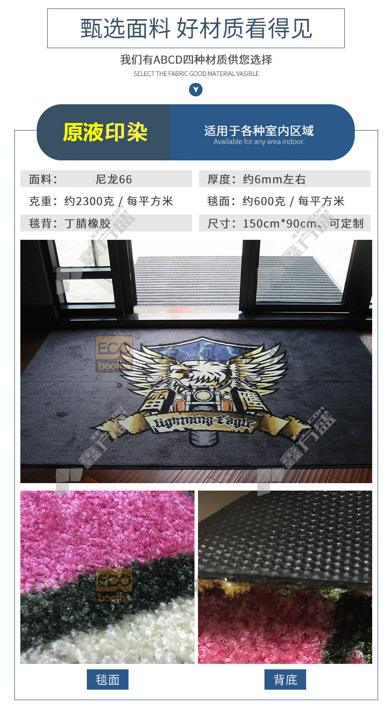 商品名称: 爱柯部落 高级意彩图文LOGO地垫原液印染垫 1.5m*0.9m*10mm 定制款 E2010401003