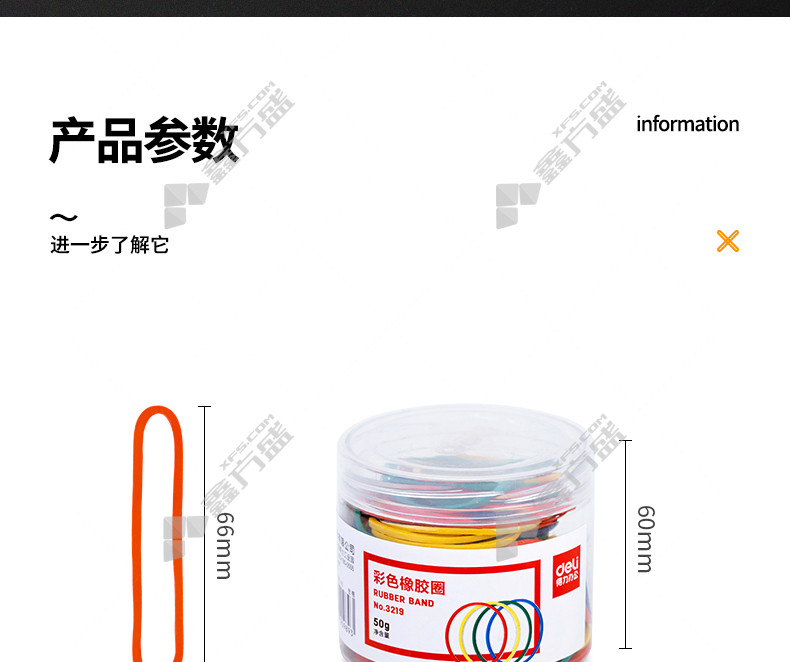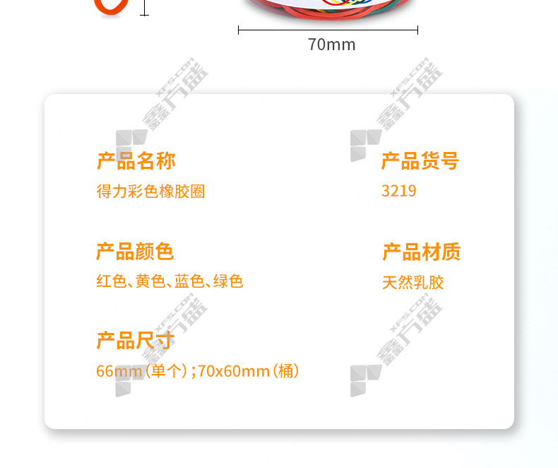 商品名称: 得力 3219 彩色橡胶圈 无 50g/筒