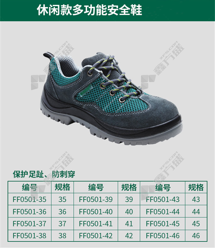 商品名称: 世达 休闲款保护足趾防刺穿安全鞋 FF0501 42码 灰绿色