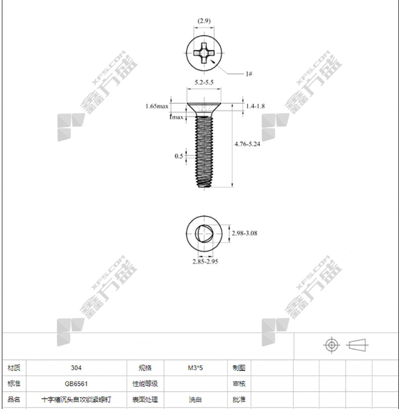 商品名称: 法思特 GB6561 304十字槽沉头自攻锁紧螺钉 洗白M3 M3 5mm