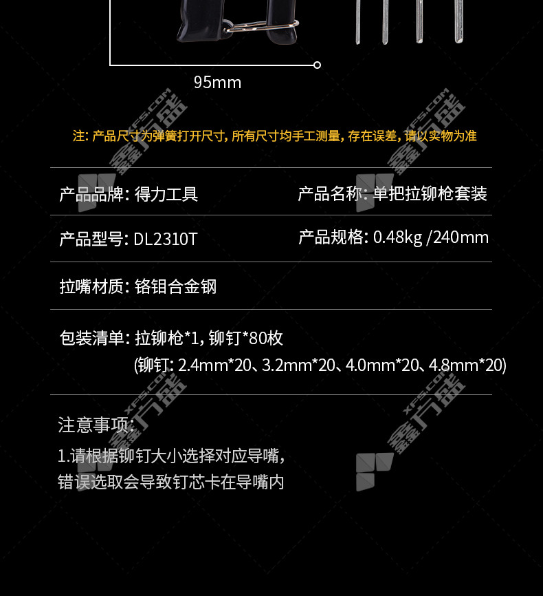商品名称: 得力 单把拉铆枪套装 9寸 DL2310T