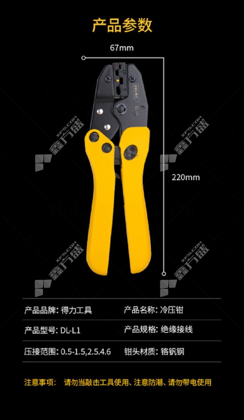 得力deli 绝缘端子口压接钳 0.5-1.5,2.5,4,6 DL-L1