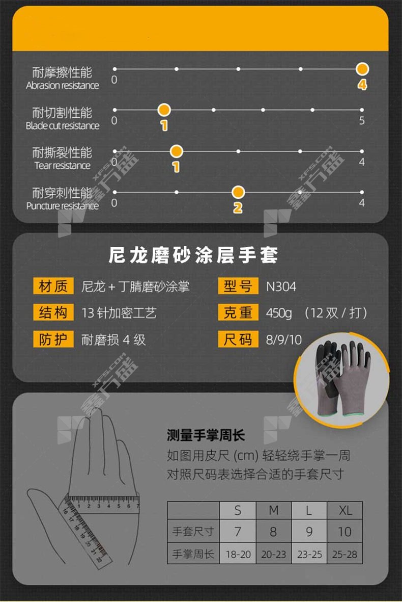 涂层手套规格: N304