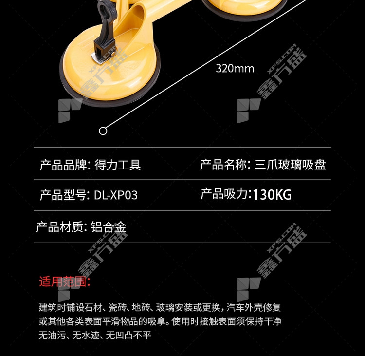 商品名称: 得力 三抓玻璃吸盘 三爪 225kg DL-XP13