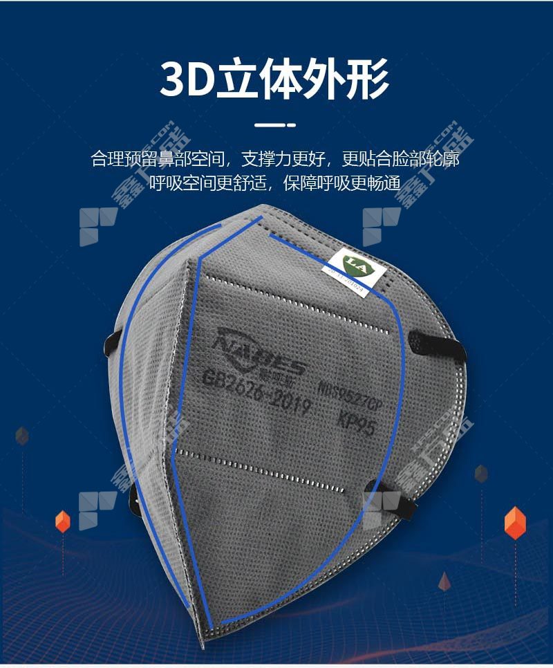 商品名称: 耐呗斯 折叠头带无呼吸阀KP95防油口罩 50只装 灰色 头戴式 50只/盒 NBS9527CP