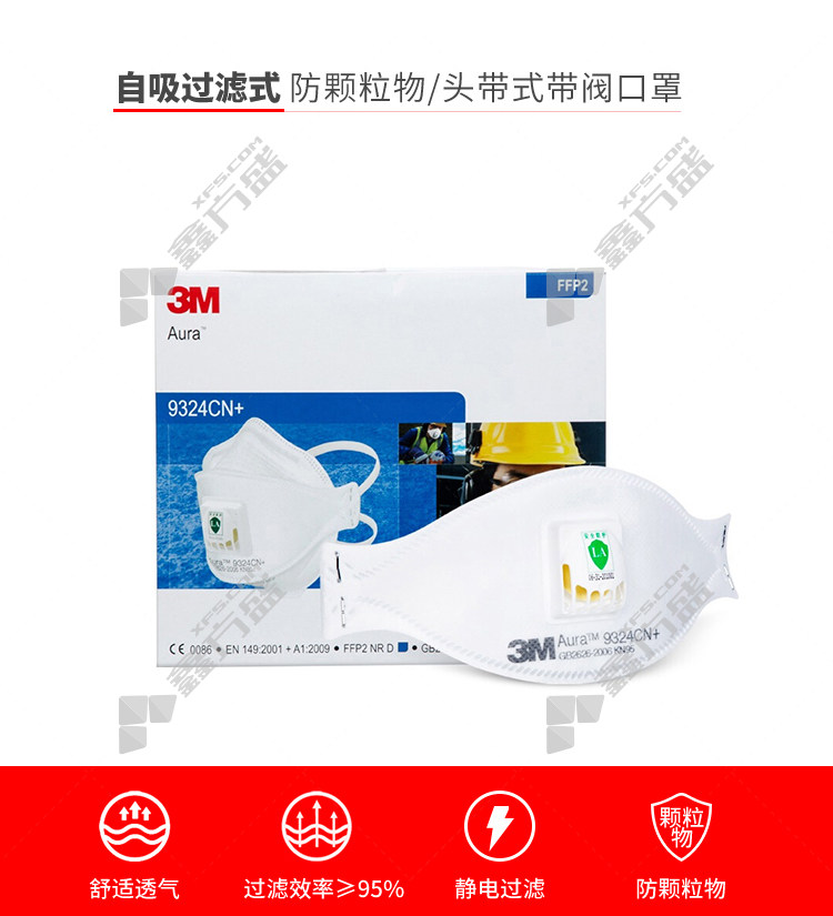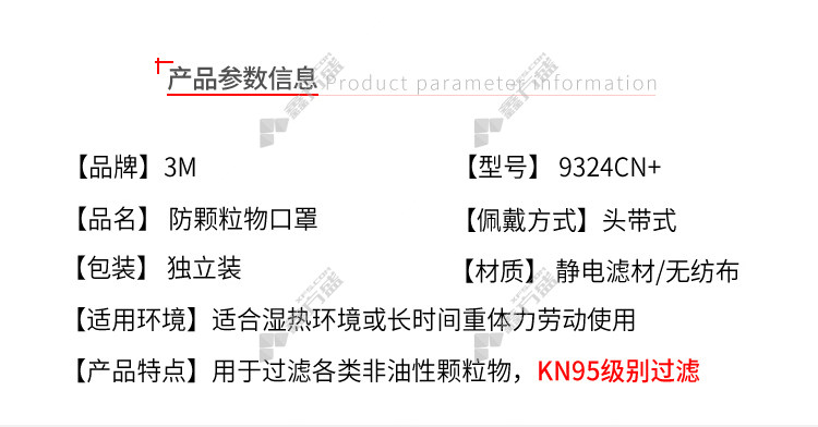 商品名称: 3M 9324CN+ 自吸过滤式防颗粒物口罩 白色 头戴式 10只/盒 9324CN