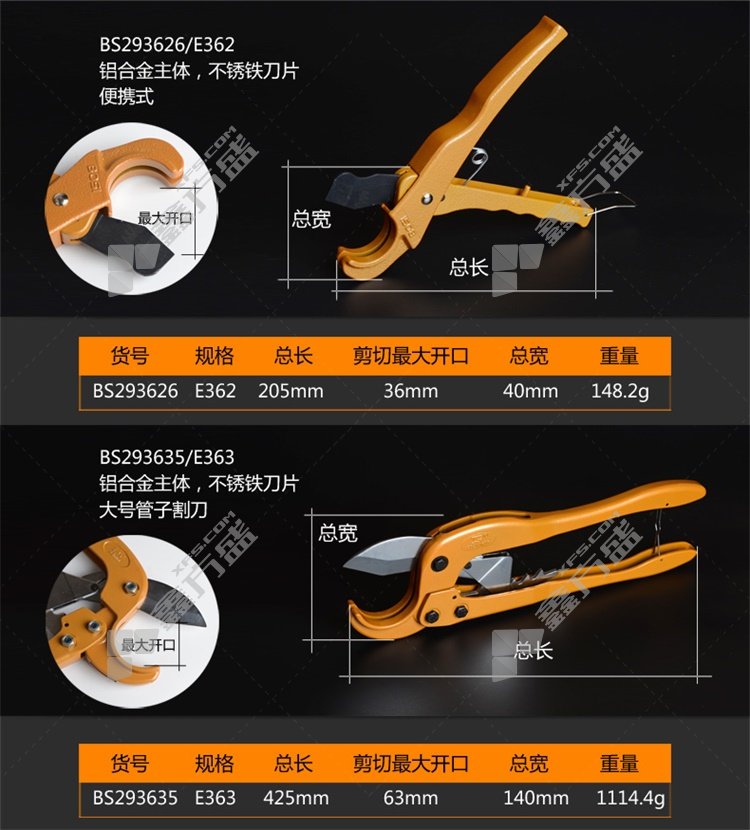 商品名称: 波斯 BS291581 PVC金色管子割刀 8" BS291581
