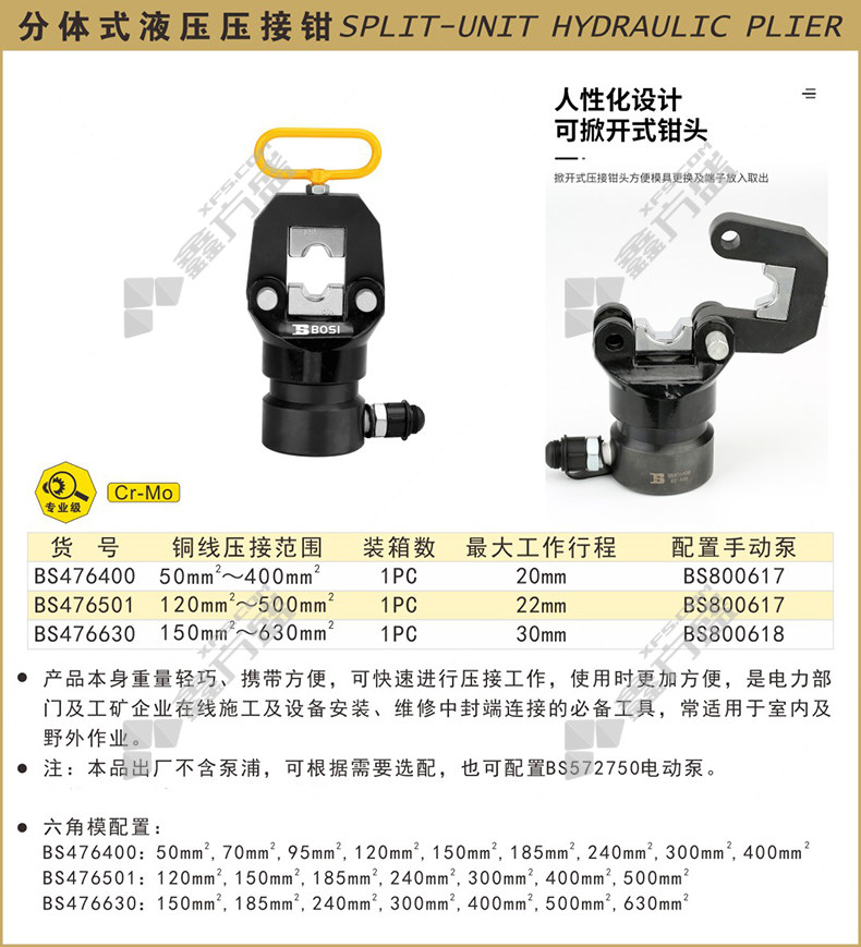 商品名称: 波斯 BOSI 分体式液压压接钳 BS476630 476630