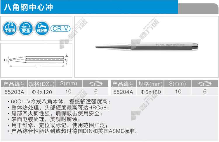 首页 首页 > 卡尔/KAER 八角钢中心冲 55203A 4mm 10*120mm