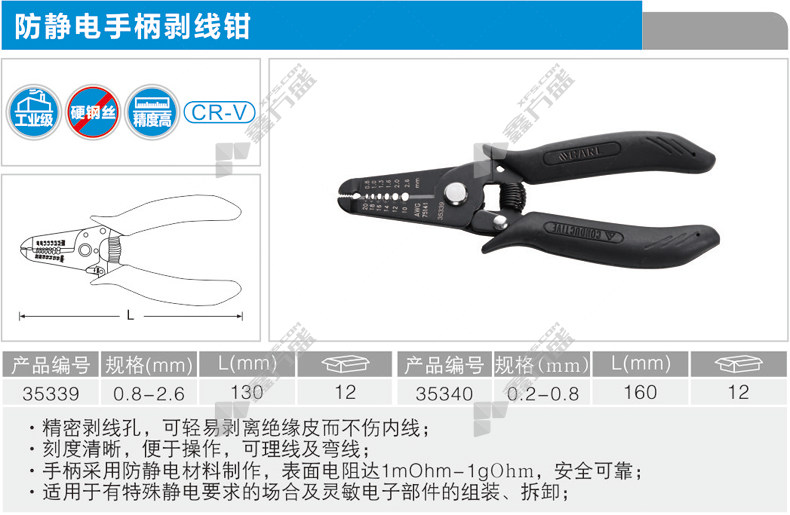 商品名称: 卡尔/KAER 防静电手柄剥线钳 5"(0.2-0.8MM) 35340