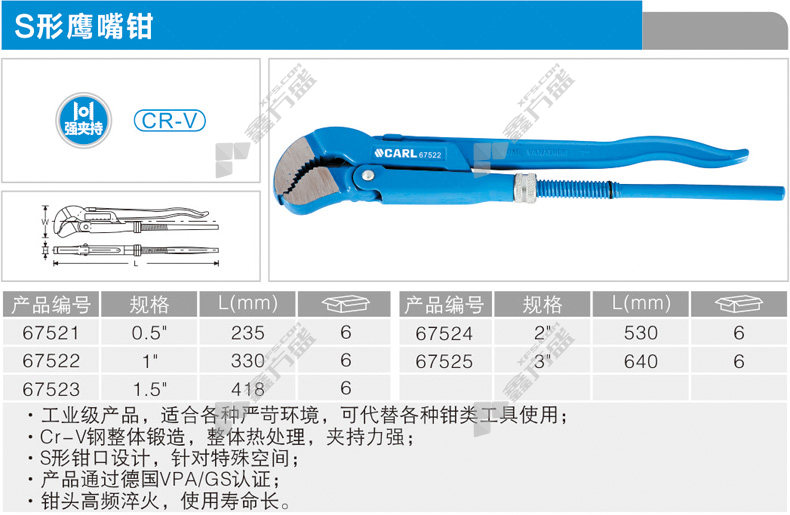 首页 首页 > 卡尔/KAER 工业级S形鹰嘴钳 1.5" 67523