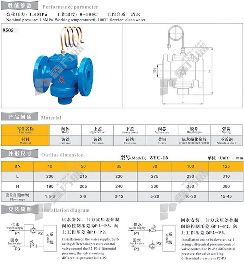 商品名称: 埃美柯 A4005 内螺纹 自力式压差控制阀 DN100 ZYC-16 PN16