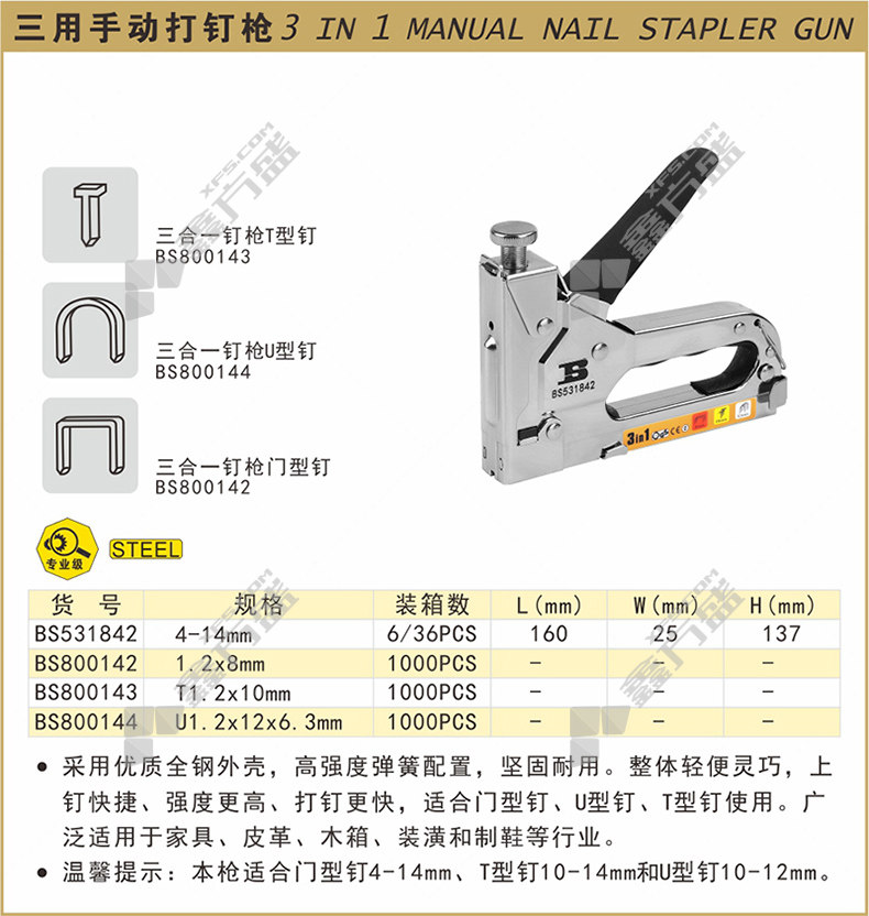商品名称: 波斯 BOSI 三合一钉枪门型钉 BS800142 800142