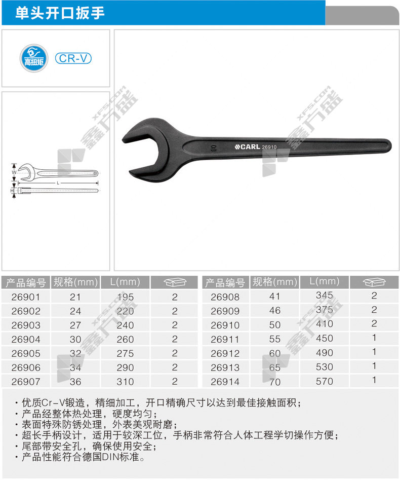 商品名称: 卡尔/KAER 工业级单头开口扳手 65mm 26913
