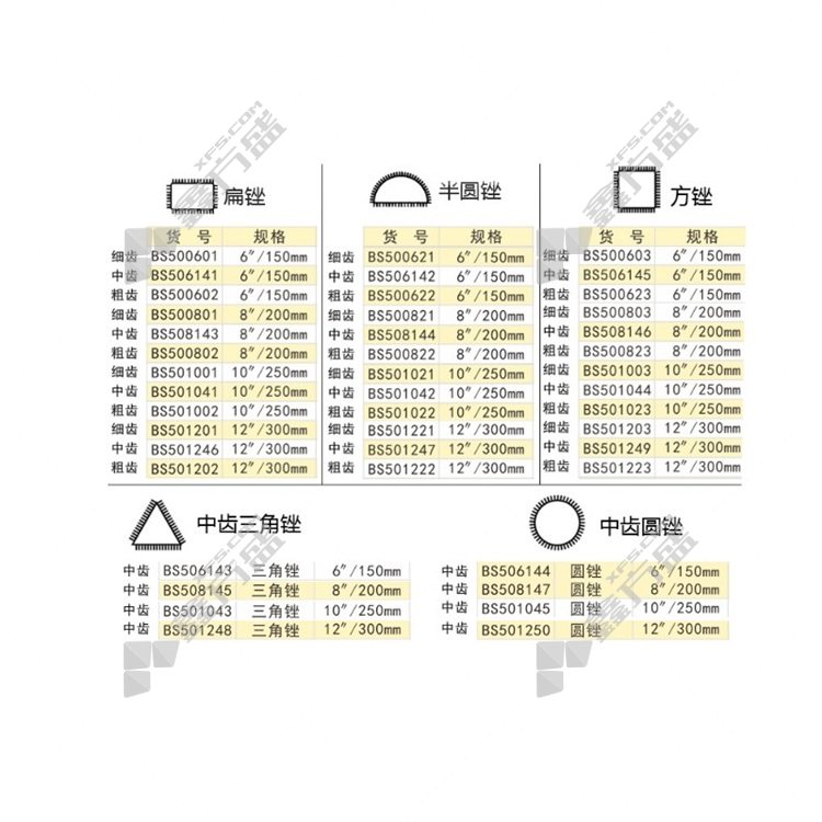 商品名称: 波斯 圆锉-中齿 圆锉 BS508147 8寸