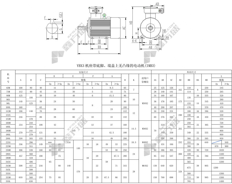 • 贝德 YBX3防爆电机 315L1系列 YBX3-315L1-4-160kw-B3 /