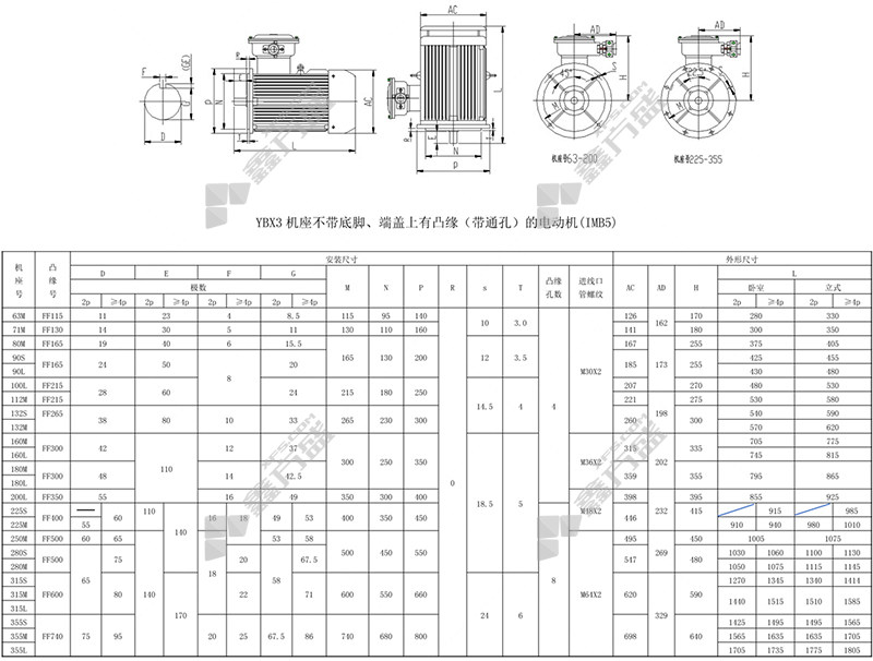 基座中心: YBX3-315L1-4-160kw-B3