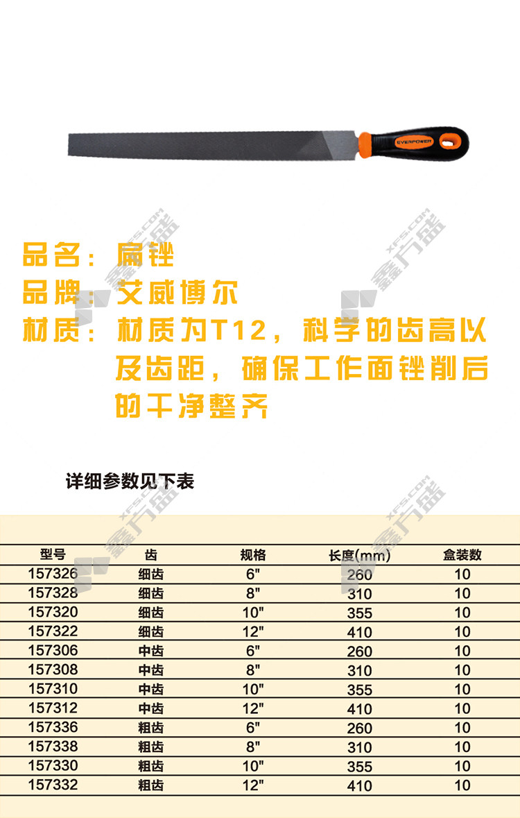 商品名称: 艾威博尔 粗齿扁锉 扁锉 157330 10寸