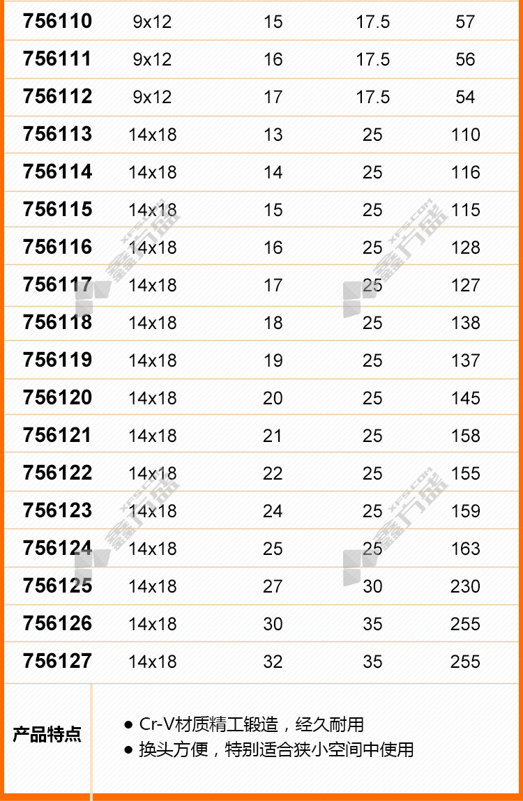 得力deli 14件套镜面两用扳手 CR-V 8~32mm 14件套 DL0114