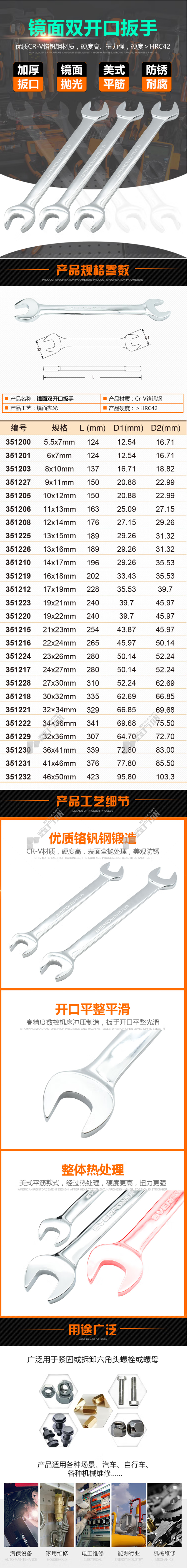 商品名称: 艾威博尔 镜面双开口扳手 6×7mm 351201