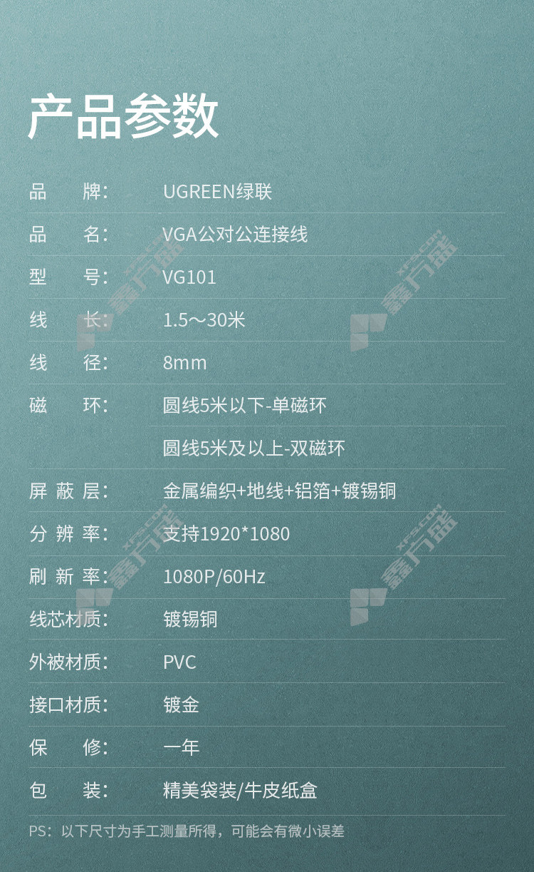 商品名称: 绿联UGREEN VGA线3+6芯工程线 11631 3m 黑