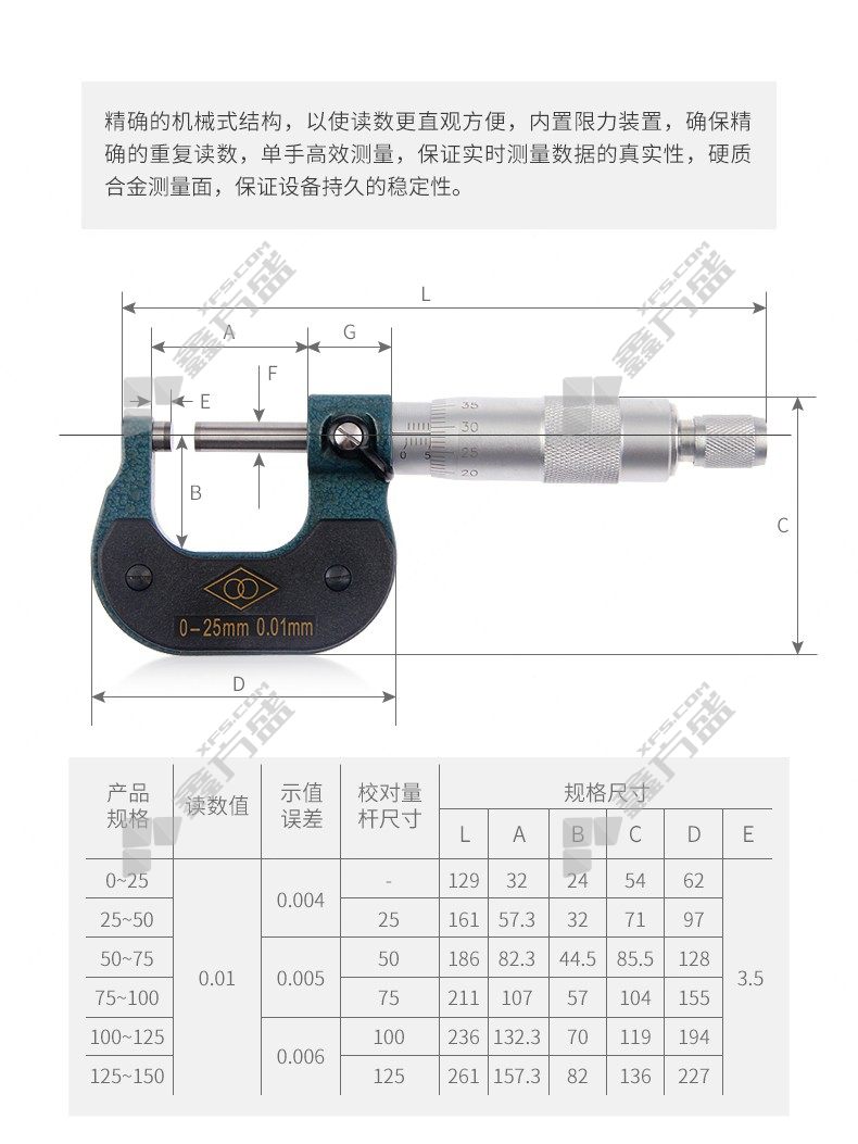 商品名称: 哈量LINKS 直进式公法线千分尺 50-75_0.01