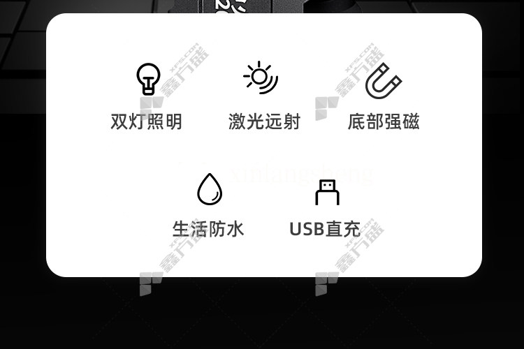 商品规格:前灯5W 侧灯2W/IP44/前灯+侧灯+激光/G20