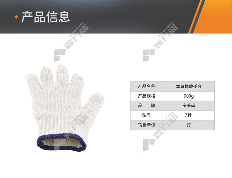 商品名称: 安美尚 本白棉纱手套 7针 900g 本白 12双/打