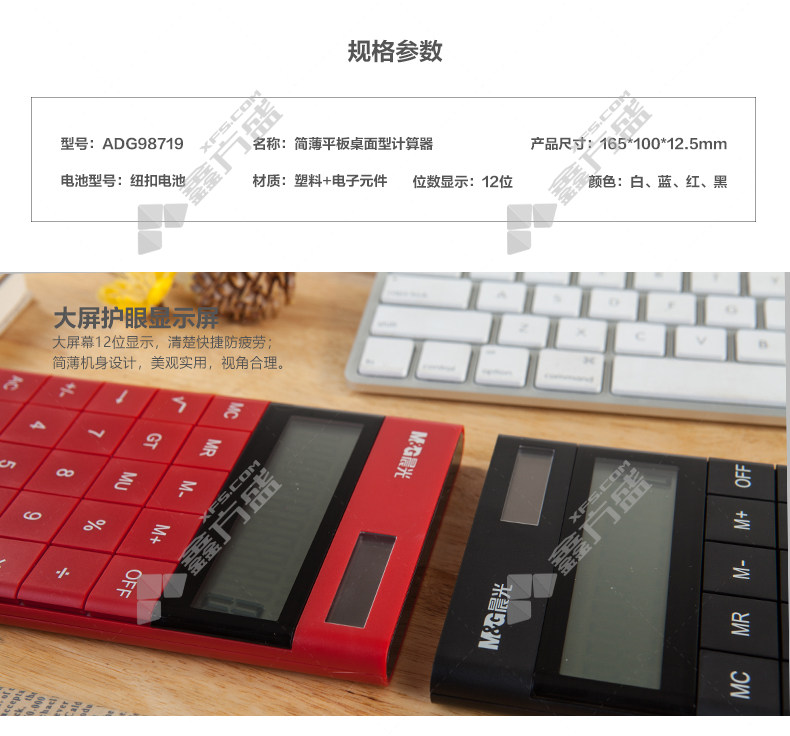 • 晨光 ADG98719 简薄平板桌面型计算器 12位 不支持语音功能 白色