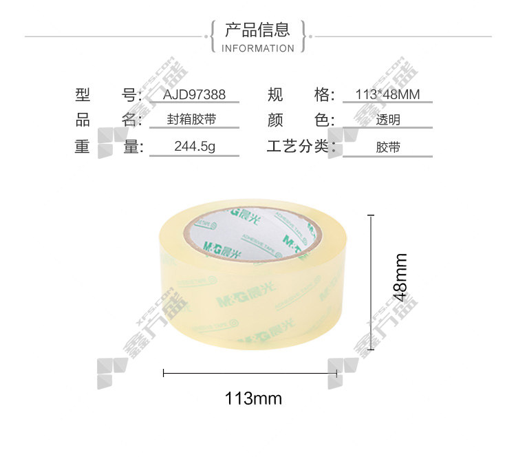 商品名称: 晨光 超透封箱胶带 AJD97388 AJD97388 48mm*100y 透明