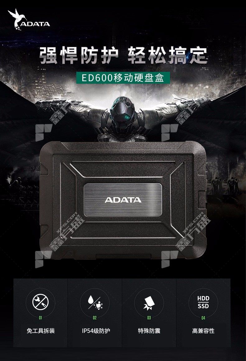 商品名称: 威刚ADATA ED600硬盘盒移动机械硬盘 黑色 USB3.1 ED600