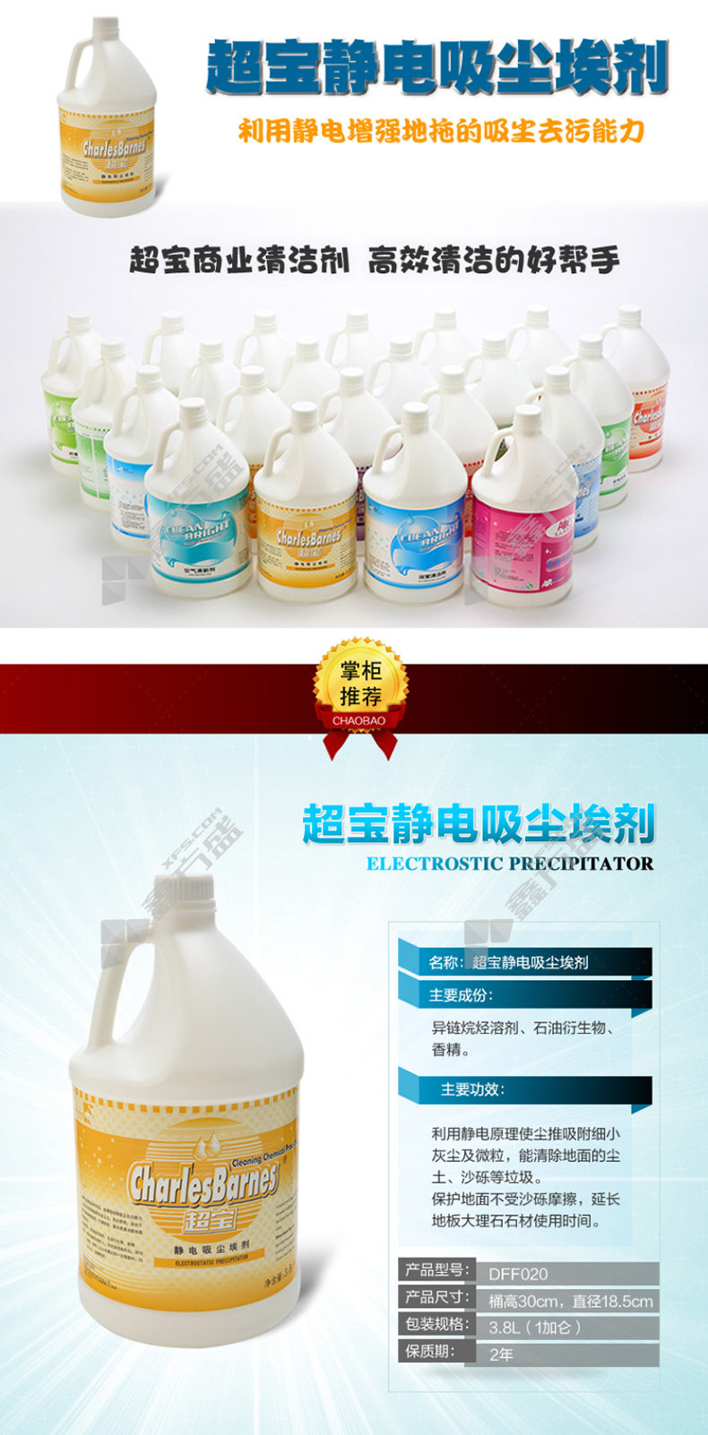 商品名称: 超宝 CHAOBAO 洁亮静电吸尘埃剂 DFF020J 3.8L DFF020J
