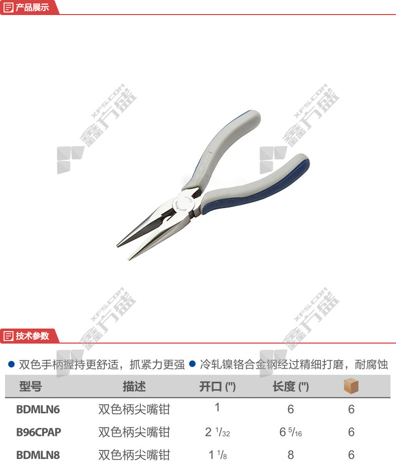 商品名称: 蓝点 双色柄尖嘴钳 BDMLN6 160mm 6寸