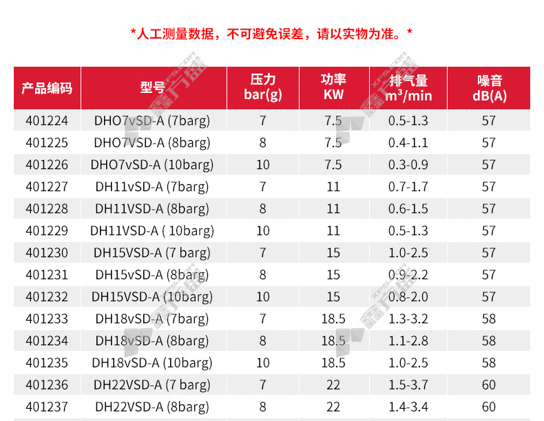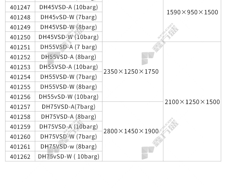 首页 首页 > 格南登福 管空气压缩机无油水润滑永磁变频螺杆DH30VSD-A DH30VSD-A(8barg)