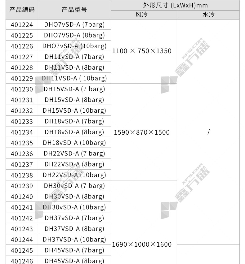 商品名称: 格南登福 管空气压缩机无油水润滑永磁变频螺杆DH30VSD-A DH30VSD-A(8barg)