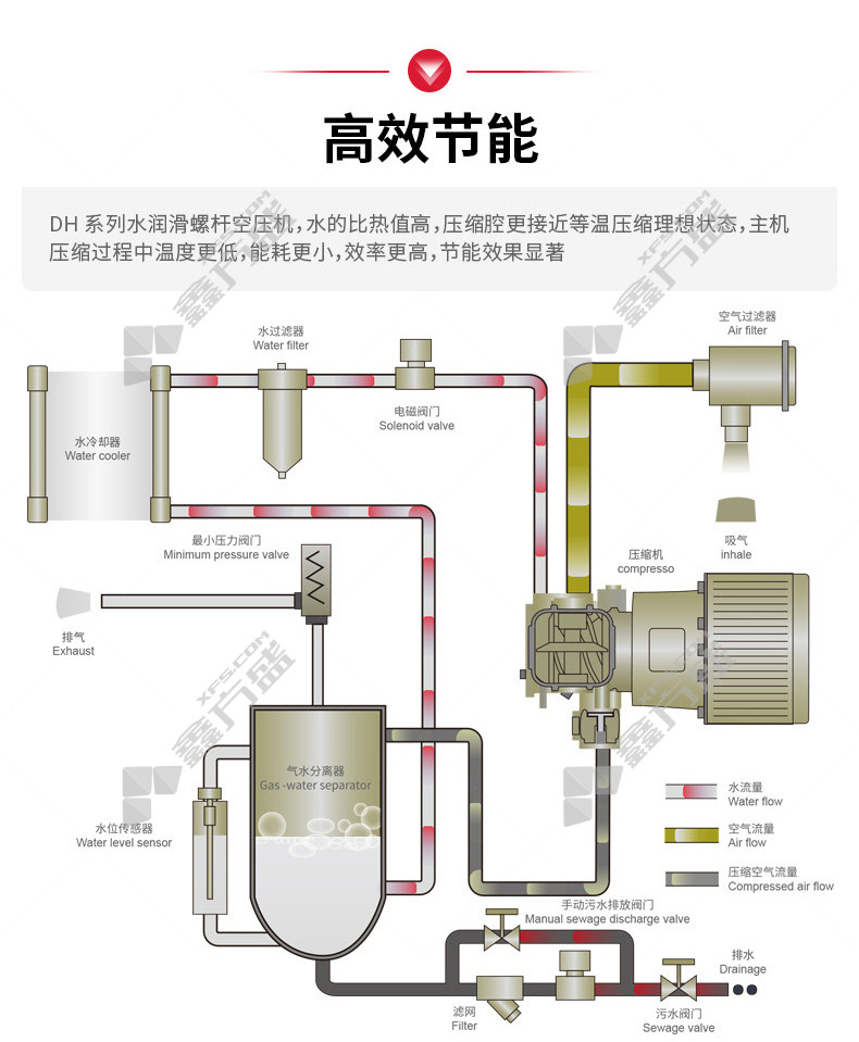 格南登福 管空气压缩机无油水润滑永磁变频螺杆DH55VSD-W DH55VSD-W(8barg)