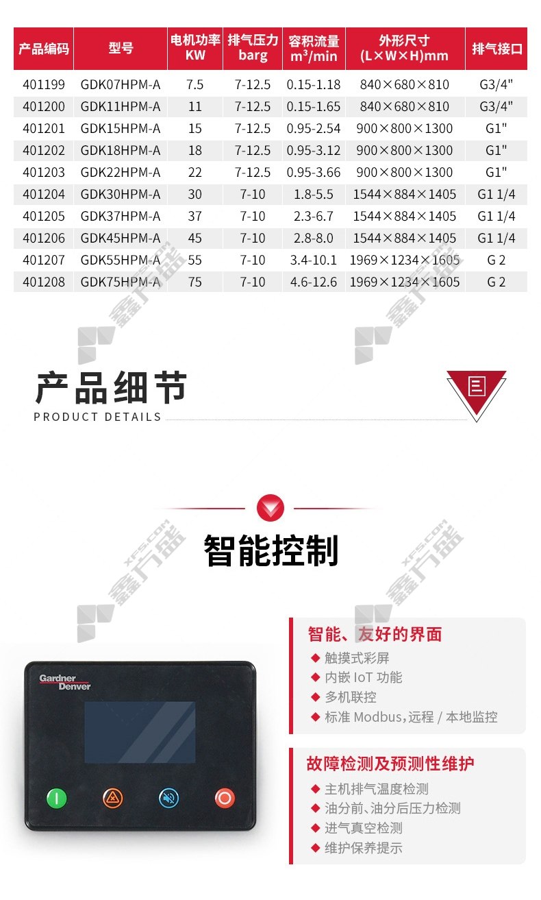 商品名称: 格南登福 管空气压缩机永磁变频微油螺杆GDK75HPM-A GDK75HPM-A(7-10barg)