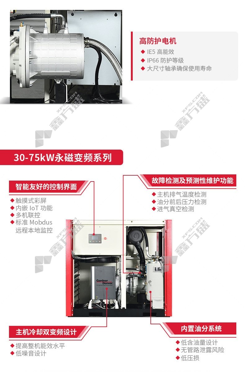 • 格南登福 管空气压缩机永磁变频微油螺杆GDK75HPM-A GDK75HPM-A(7-10barg)