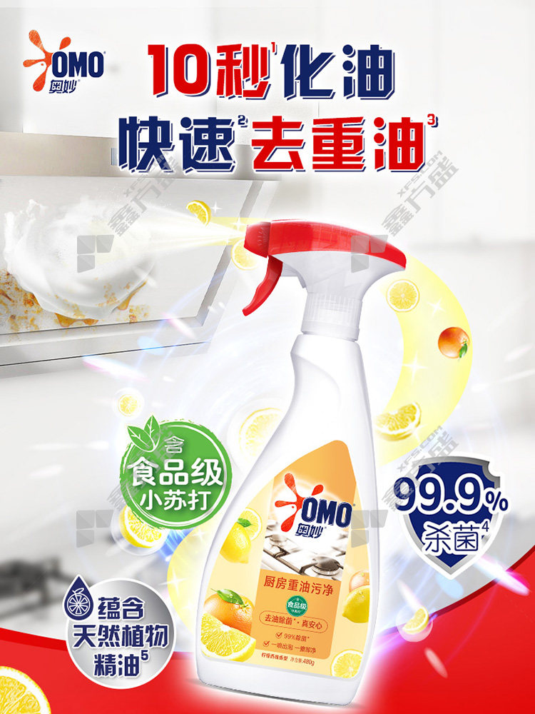 商品名称: 奥妙 西柚香型双瓶装厨房重油污净 2*480g