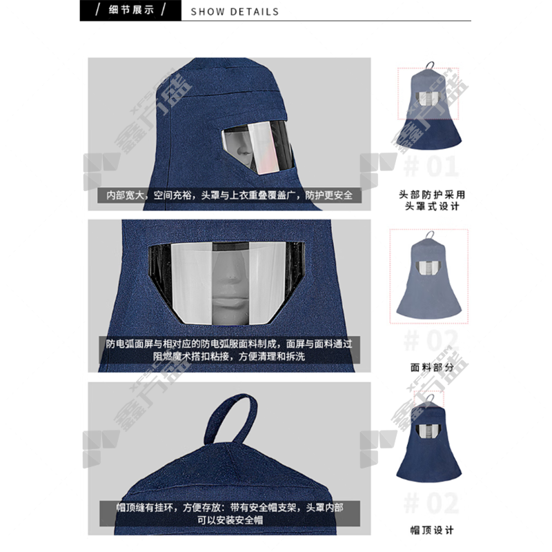 商品名称: 诚格C&G 防电弧头罩ArcPro-Hood-DP55DS 藏青色 55cal/cm2 ArcPro-Hood-DP55DS 均码 55cal/cm2 藏青色