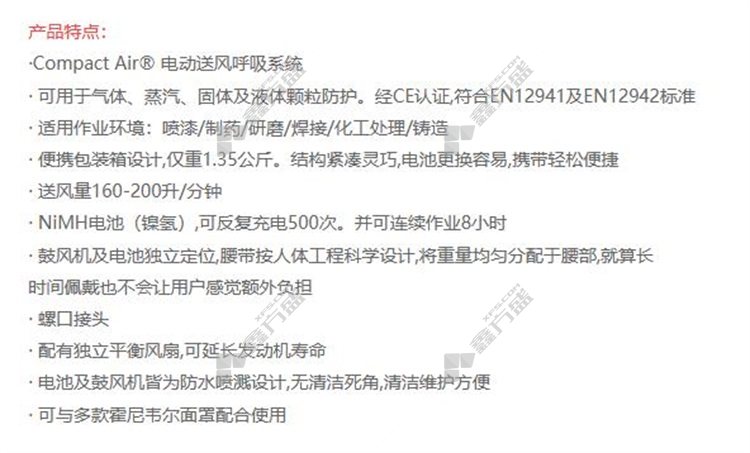 商品名称: 霍尼韦尔Honeywell COMPACT AIR 电动送风呼吸器 A150103-00 电动送风呼吸器