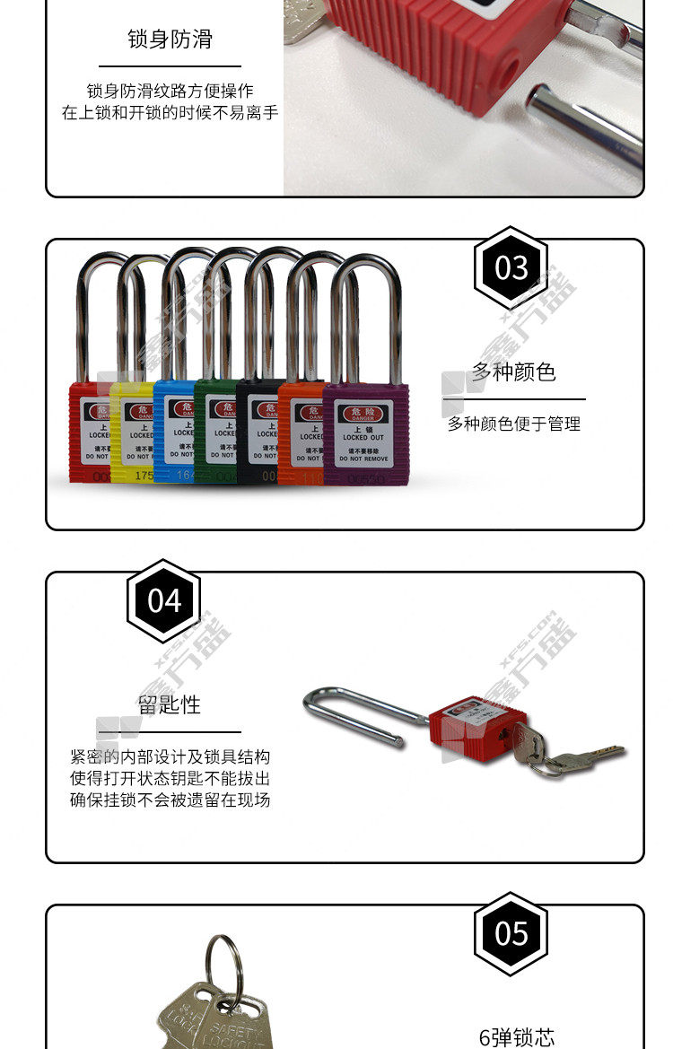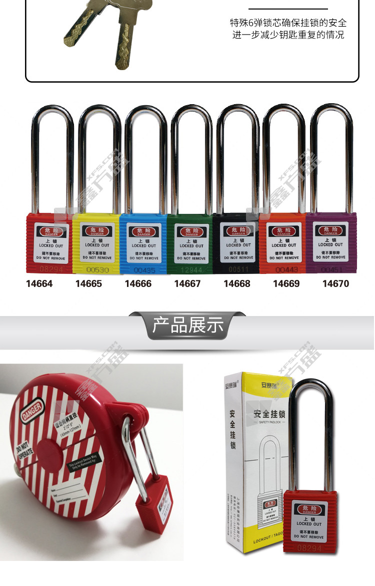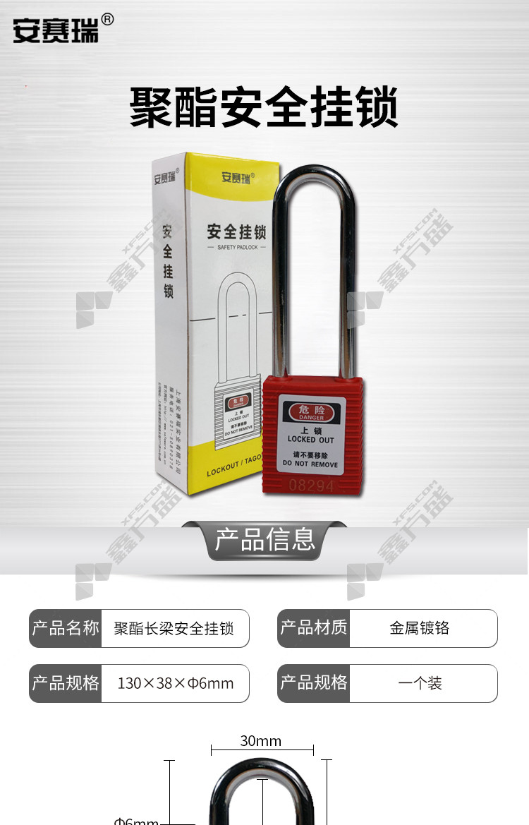 包装清单:安赛瑞 长梁工程塑料安全挂锁φ6mm*H76mm*1