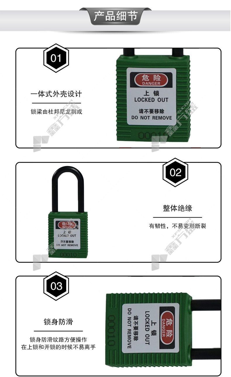包装清单:安赛瑞 绝缘安全挂锁61mm*106mm*1