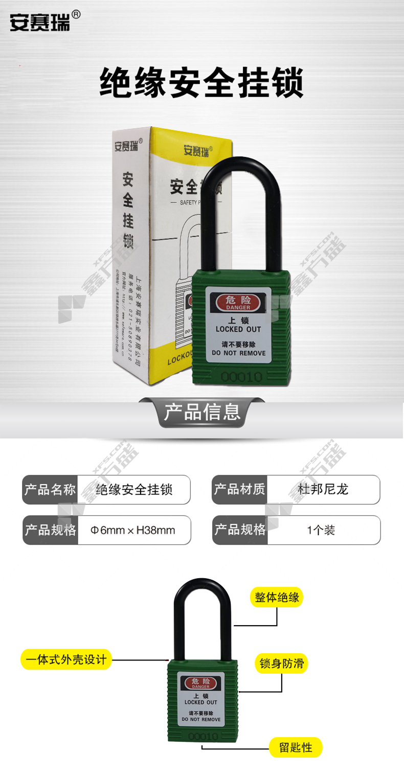 安赛瑞 14674 绝缘安全挂锁 14674 61*106mm/绿