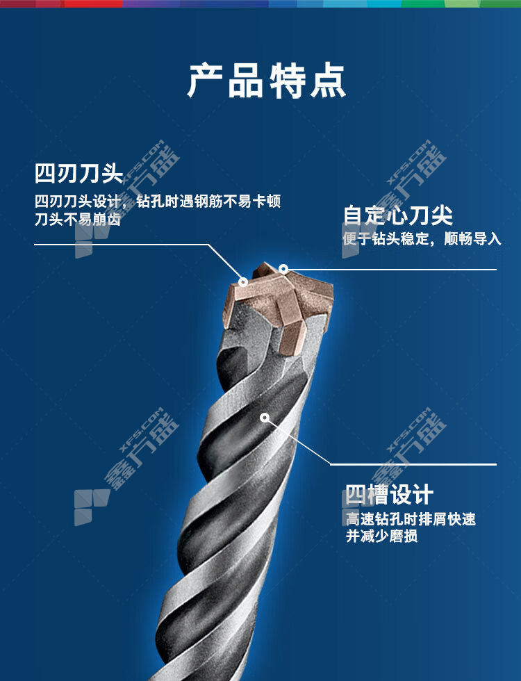 圆四坑钻头应用场景:适用于混凝土、 花岗石、大理石等钻孔用