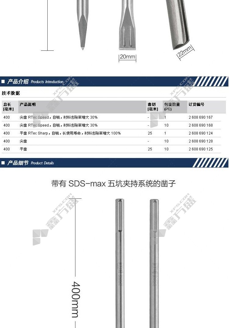 商品名称: 博世BOSCH 五坑凿子 扁凿 五坑扁凿600mm(10只装) 2608690234