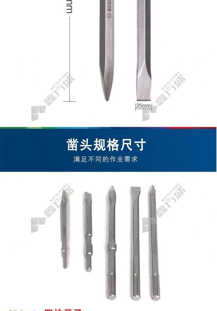 博世BOSCH 四坑凿子 SDS-plus扁凿 SDS-plus四坑扁凿20x250mm 2608578754